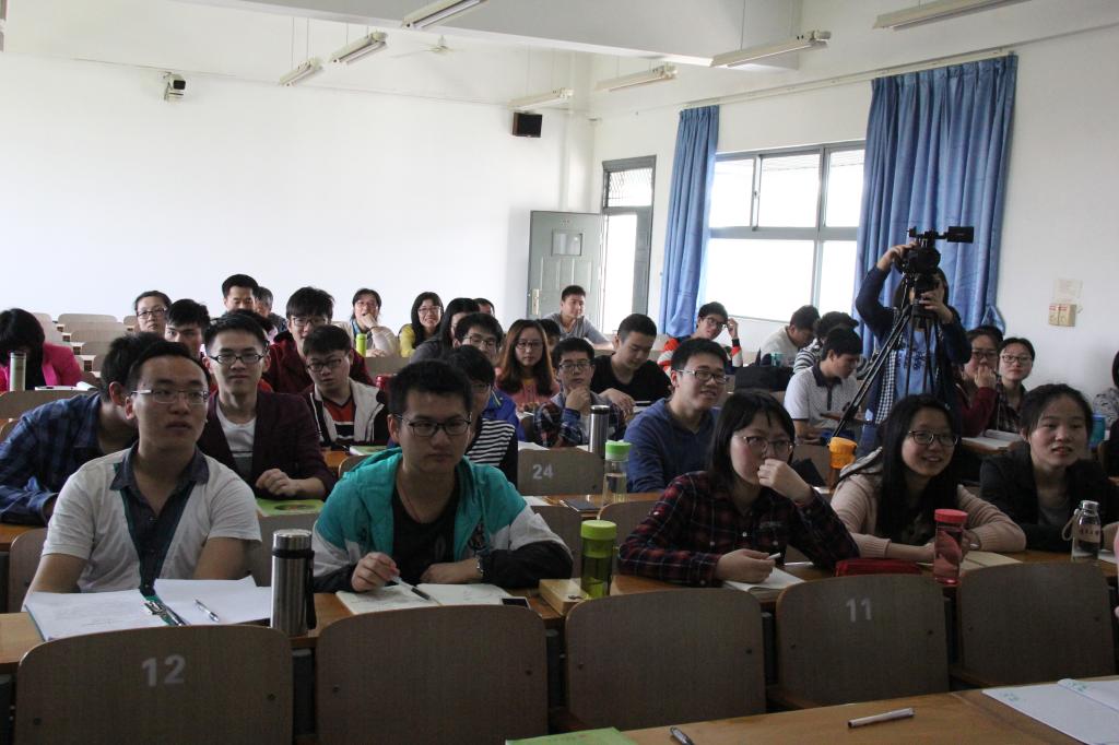 刘继红教授以“园艺植物育种——以果树为例”作为主题,向在座的师生详细介绍了果树育种意义、目标、原理及手段,针对听课学生多是来自非园艺专业学生,刘继红老师重点介绍了多年生果树育种与一年生作物育种之间异同,通过大量精美的图片,配合鲜活的语言,生动详实的展现了二者差异,凸显出果树育种周期之长,难度之大。为了让在座同学直观了解当下市场热卖的晚熟品种——伦晚脐橙情况,他特地将从秭归带回的伦晚脐橙花果同枝实物带到课堂,令现场同学啧啧称奇,同时把精心准备的纽荷尔脐橙、椪柑及刚下树的伦晚脐橙果实让同学们品尝并作出评价,进而引出当下我国果树产业面临的一个突出问题——成熟期过于集中,引导学生思考未来果树育种方向。整个课堂讲授过程中,刘老师能够将实物与精美图片结合,经典实例与最新进展穿插,板书与多媒体配合,给现场师生留下了深刻印象。